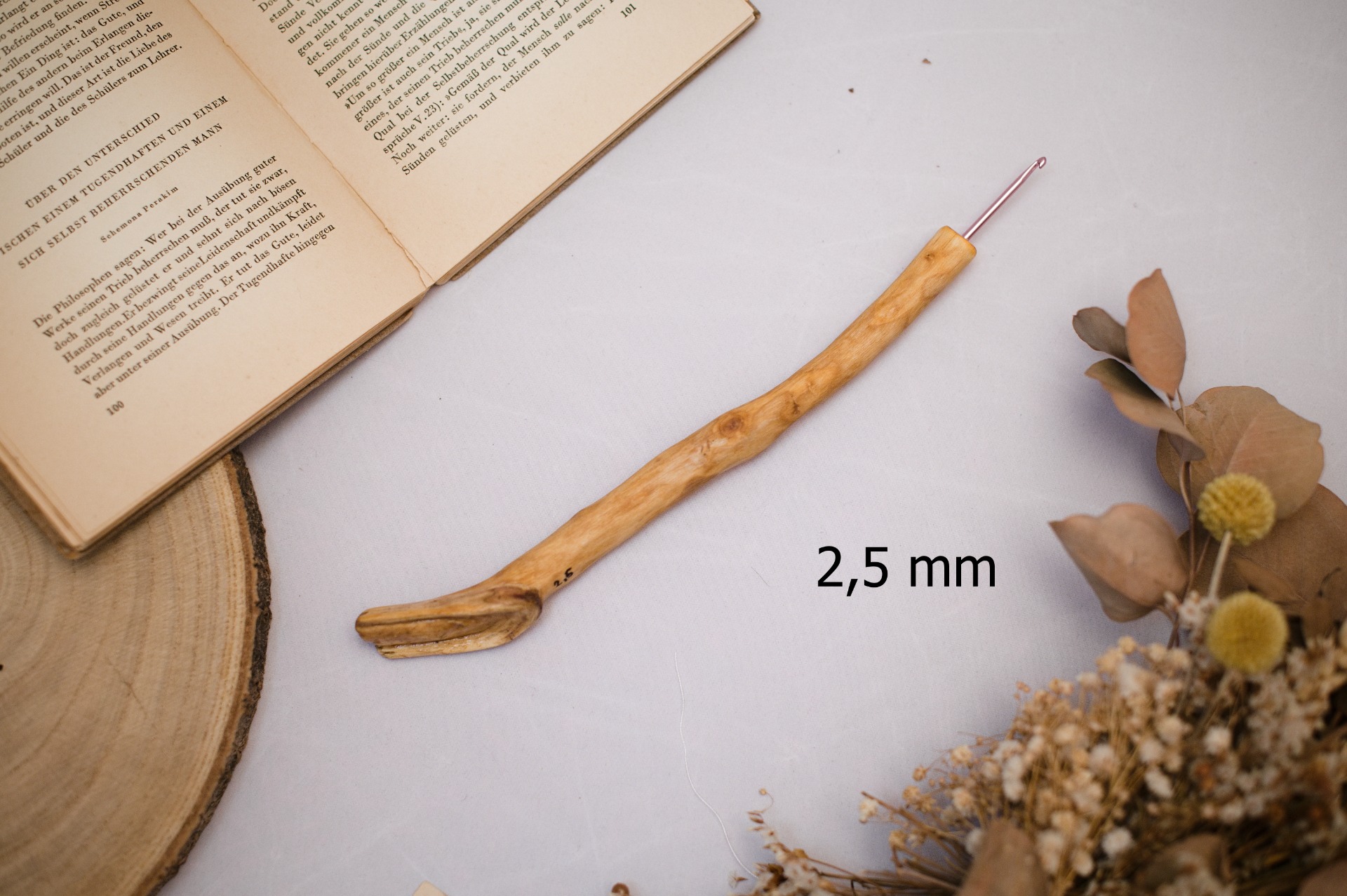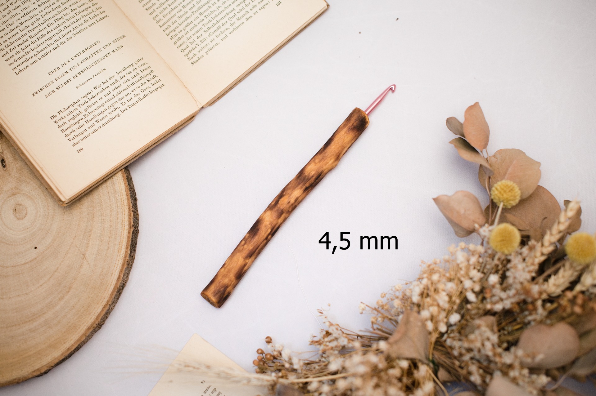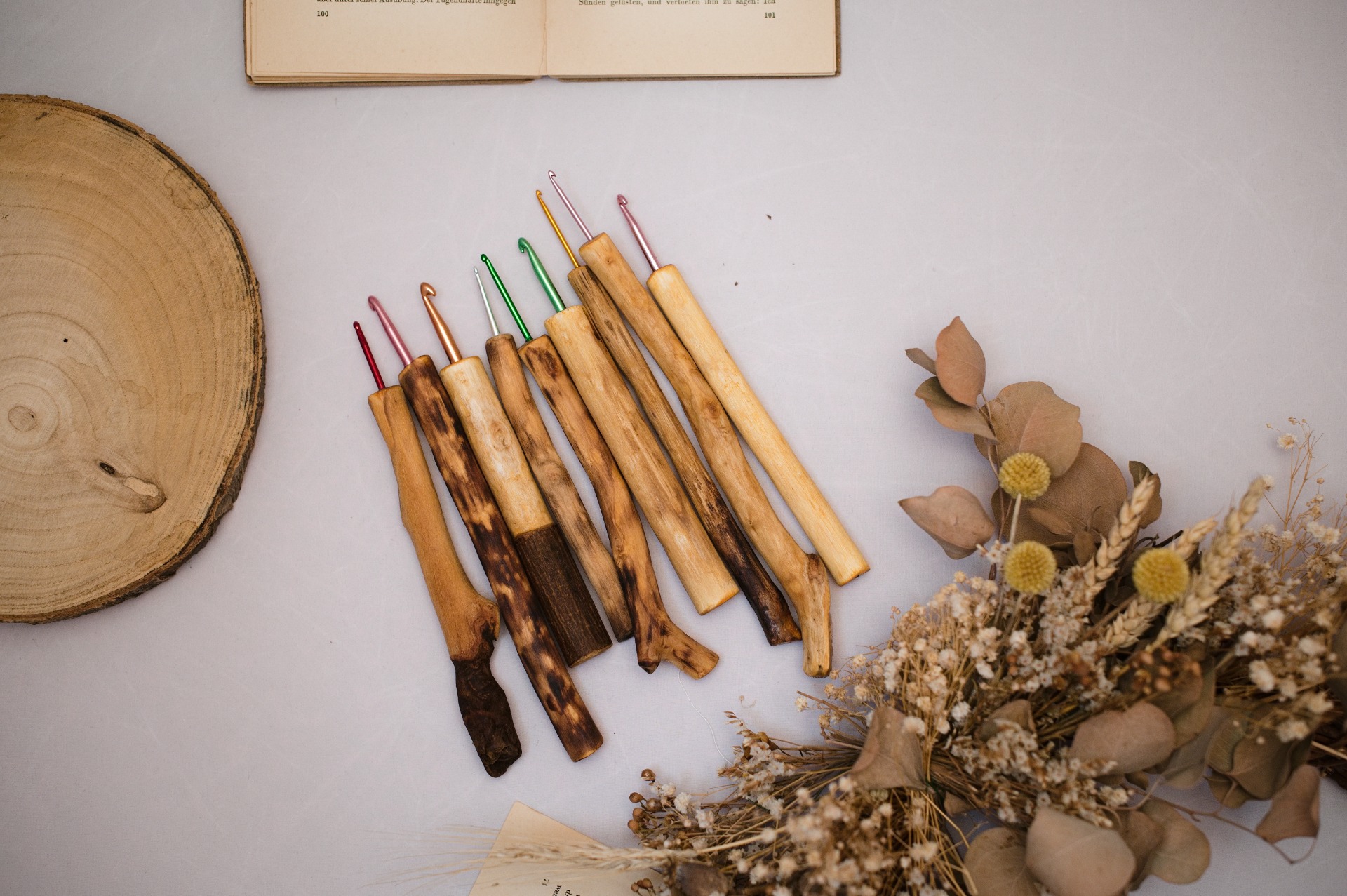 Háčky s dřevěnou rukojetí vlastní výroby.