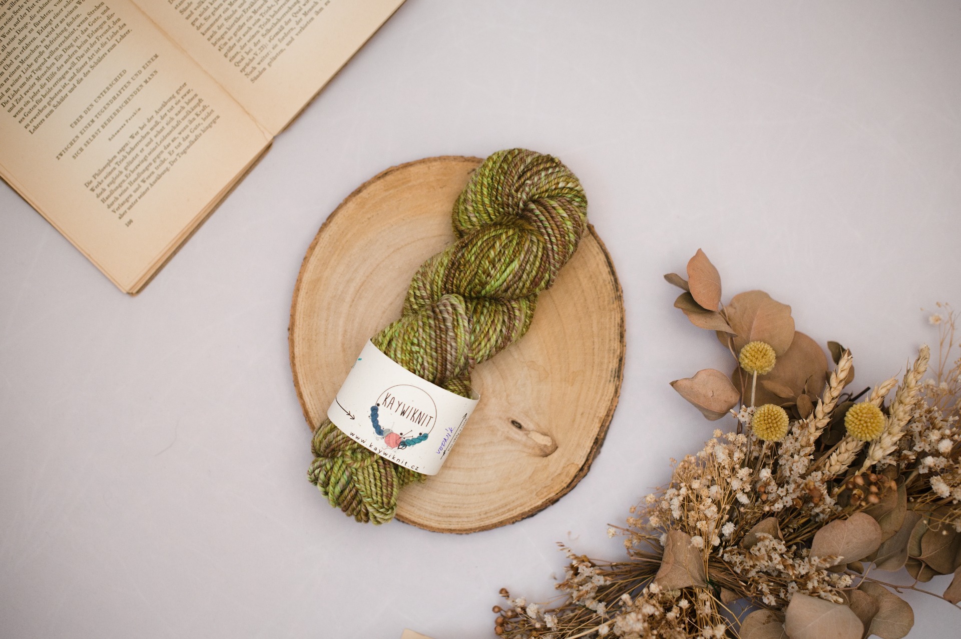 Ručně předená příze vzniká na mém kolovratu, za použití tradičních metod. Předu z vlny, kterou si sama barvím a díky použití různých metod dosahuji zajímavého míšení barev v každém přadenu.
